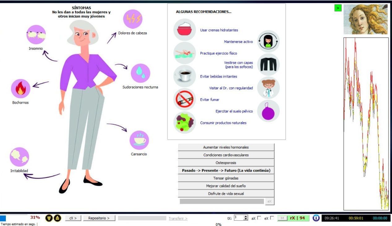 - Terapias complementarias: Aunque su evidencia científica varía, algunas mujeres encuentran alivio con acupuntura, hierbas específicas (fitoestrógenos), o, como se vio en la imagen, biorresonancia.