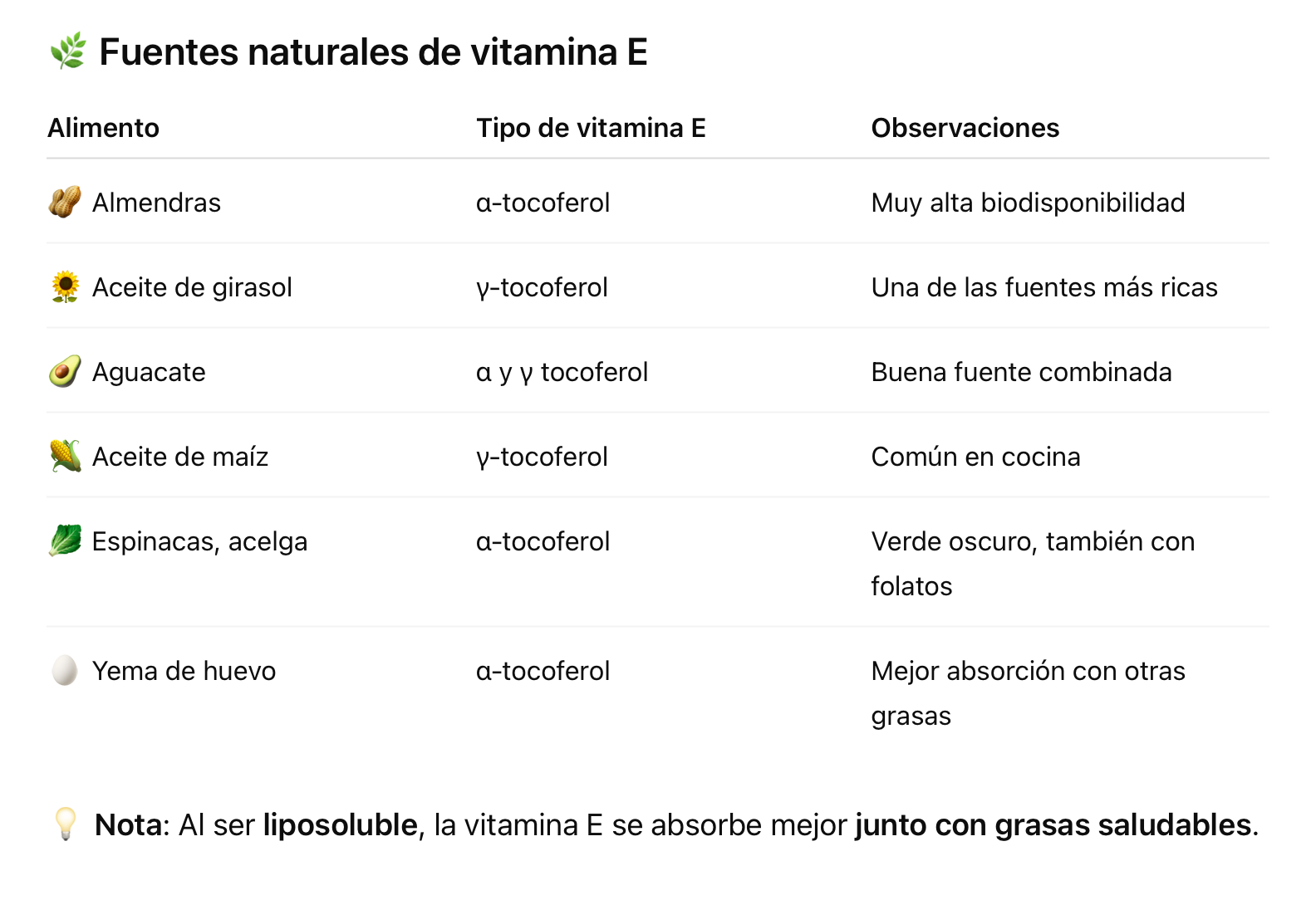 🔹 El más activo en humanos es el α-tocoferol, que también es el más común en suplementos.